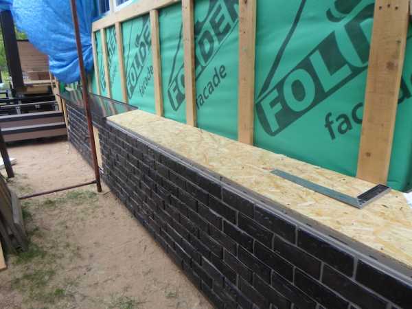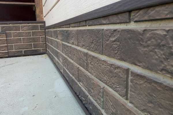 - Обшивка цоколя цокольным сайдингом Nailite Hand-Laid Brick под обоженный кирпич.