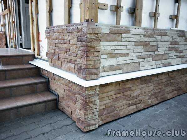 Тут несколько фотографий как это делалось: крыльцо, цоколь, стены. Все фото по проекту здесь