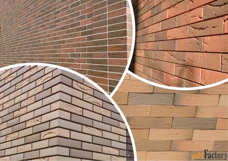 Облицовка уже возведенных стен дает много простора для творчества, этот способ выбирает большинство владельцев частных домов. Декоративный эффект достигается за счет разных видов блоков, комбинирования цветов и размеров, экспериментирования с методами перевязки и затирки, применения фигурных вариантов, монтажа под углом или ребром, вставки поясов, карнизов и свесов. Единственным обобщающим правилом является соблюдение геометрии швов. Не всегда используются целые изделия, в особенно сложных схемах их разрезают на части.