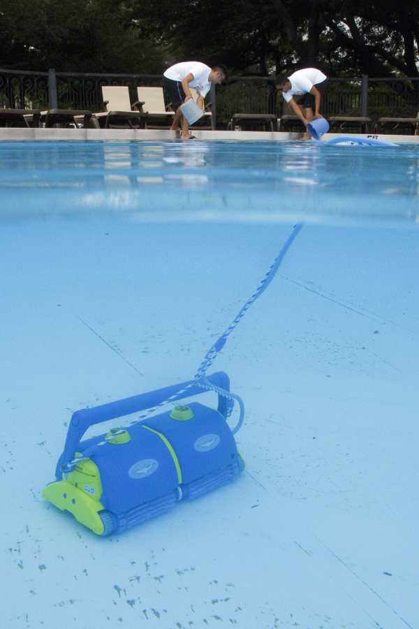 - Со дна бассейна грязь удаляется при помощи специального прибора — водяного пылесоса.
