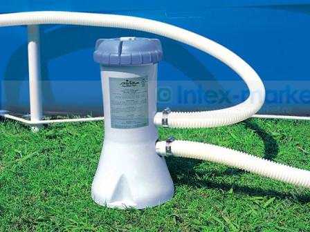- Принцип работы данной конструкции очень простой. На глубине порядка 0,5 м осуществляется засасывание воды. Она проходит по трубе и попадает в картридж. Вода после очистки сразу же попадает обратно в бассейн.