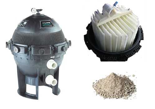 Диатомовые фильтры изготавливаются в двух вариациях. В первом случае конструкция прибора похожа с устройством песочного приспособления. Только вместо песка применяется диатомовый порошок. Во втором случае система фильтрации состоит из нескольких последовательно расположенных в одном корпусе картриджей, через которые проходит вода. Подобная конструкция максимально очищает воду, удаляя из нее мусор с размером всего 1-2 микрона.