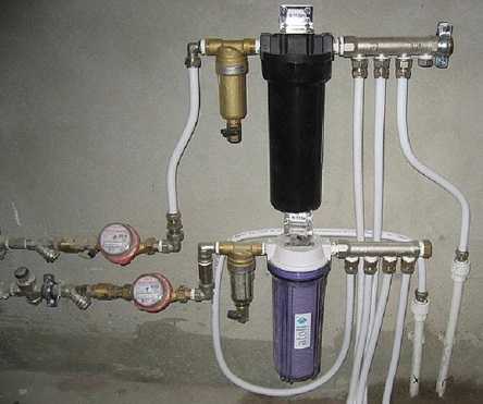 Его устанавливают непосредственно на месте входа в дом. Также такие приборы еще называют предфильтрами. Они задерживают песчинки, ил и другие загрязнения и подготавливают воду к дальнейшей очистке уже другими фильтрами.