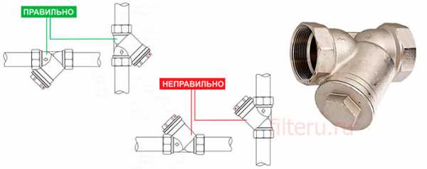 При установке фильтра грубой очистки воды стоит опираться на рисунок стрелки на корпусе, которая показывает направление движения потока воды.