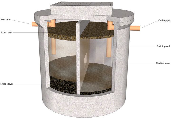 Принцип действия системы заключается в следующем: стоки из домовой канализации поступают в герметичную емкость, где в течение двух-трех дней окисляются под воздействием анаэробных бактерий, живущих в безвоздушном пространстве.