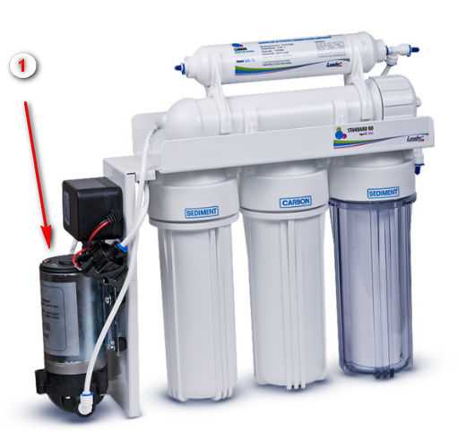 ΠΡΠΎΠΉΠ΄Ρ ΠΏΡΠ΅Π΄Π²Π°ΡΠΈΡΠ΅Π»ΡΠ½ΡΡ ΠΎΡΠΈΡΡΠΊΡ, ΠΏΡΠΈ ΠΏΠΎΠΌΠΎΡΠΈ Π²ΡΡΠ΅ΡΠΊΠ°Π·Π°Π½Π½ΡΡ ΠΊΠ°ΡΡΡΠΈΠ΄ΠΆΠ΅ΠΉ, Π²ΠΎΠ΄Π° ΠΏΠΎΡΡΡΠΏΠ°Π΅Ρ ΠΊ ΠΌΠΎΠ΄ΡΠ»Ρ Ρ ΠΎΠ±ΡΠ°ΡΠ½ΠΎΠΎΡΠΌΠΎΡΠΈΡΠ΅ΡΠΊΠΎΠΉ ΠΌΠ΅ΠΌΠ±ΡΠ°Π½ΠΎΠΉ. ΠΠΌΠ΅Π½Π½ΠΎ Π½Π° ΡΡΠΎΠΉ ΠΌΠ΅ΠΌΠ±ΡΠ°Π½Π΅, ΠΏΡΠΎΠΏΡΡΠΊΠ°ΡΡΠ΅ΠΉ ΡΠ΅ΡΠ΅Π· ΡΠ΅Π±Ρ Π»ΠΈΡΡ ΠΌΠΎΠ»Π΅ΠΊΡΠ»Ρ Π²ΠΎΠ΄Ρ, ΠΈ Π±Π°Π·ΠΈΡΡΠ΅ΡΡΡ ΠΏΡΠΈΠ½ΡΠΈΠΏ ΡΠΈΡΡΠ΅ΠΌΡ ΠΎΠ±ΡΠ°ΡΠ½ΠΎΠ³ΠΎ ΠΎΡΠΌΠΎΡΠ°. Π§ΡΠΎΠ±Ρ ΠΏΡΠΎΠΉΡΠΈ ΡΠ΅ΡΠ΅Π· ΠΌΠ΅ΠΌΠ±ΡΠ°Π½Ρ Π² Π²ΠΎΠ΄ΠΎΠΏΡΠΎΠ²ΠΎΠ΄Π½ΠΎΠΉ ΡΠΈΡΡΠ΅ΠΌΠ΅ Π΄ΠΎΠ»ΠΆΠ½ΠΎ Π±ΡΡΡ Π΄Π°Π²Π»Π΅Π½ΠΈΠ΅ ΠΏΠΎΡΡΠ΄ΠΊΠ° 3 — 3,5 Π±Π°Ρ. ΠΠΎΡΡΠΎΠΌΡ Π½Π΅ΡΠ΅Π΄ΠΊΠΎ Π² ΠΊΠΎΠΌΠΏΠ»Π΅ΠΊΡ ΠΏΠΎΡΡΠ°Π²ΠΊΠΈ Π²Ρ ΠΎΠ΄ΠΈΡ ΡΠ»Π΅ΠΊΡΡΠΈΡΠ΅ΡΠΊΠΈΠΉ Π½Π°Π³Π½Π΅ΡΠ°ΡΡΠΈΠΉ Π½Π°ΡΠΎΡ. Π ΠΎΡΠ΄Π΅Π»ΡΠ½ΡΡ ΠΌΠΎΠ΄Π΅Π»ΡΡ Π΄Π»Ρ ΠΎΠ±Π΅Π·Π·Π°ΡΠ°ΠΆΠΈΠ²Π°Π½ΠΈΡ Π²ΠΎΠ΄Ρ ΠΈ ΡΠ½ΠΈΡΡΠΎΠΆΠ΅Π½ΠΈΡ Π²ΡΠ΅Π΄Π½ΡΡ ΠΌΠΈΠΊΡΠΎΠΎΡΠ³Π°Π½ΠΈΠ·ΠΌΠΎΠ² ΡΡΠΎΠΈΡ ΡΠ»ΡΡΡΠ°ΡΠΈΠΎΠ»Π΅ΡΠΎΠ²Π°Ρ Π»Π°ΠΌΠΏΠ°.
