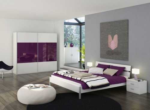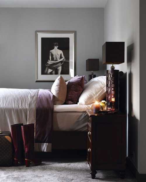 Серо-фиолетовый интерьер спальни