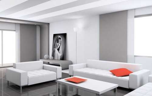 Серо-белый интерьер гостиной