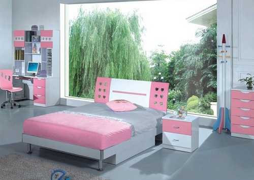Серо-розовый интерьер детской комнаты для девочки
