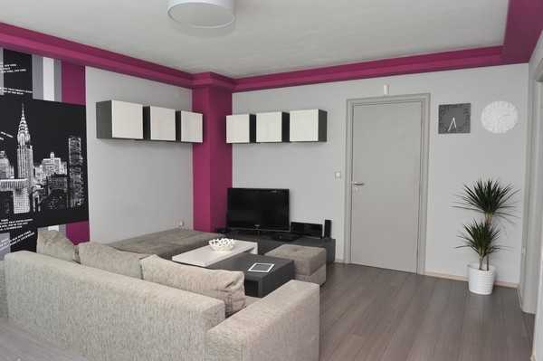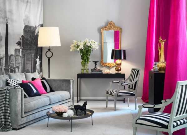 Сочетание серого в интерьере с розовым и белым