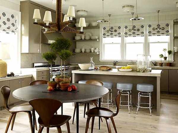 А вот более прохладные оттенки: графитовый, цвет камня, оттенок, похожий на цвет воды в предвечерних сумерках – идеально подойдут для оформления большой кухни.