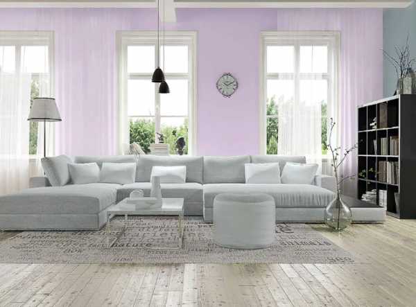 Сочетание серого цвета в интерьере с нежно-фиолетовым