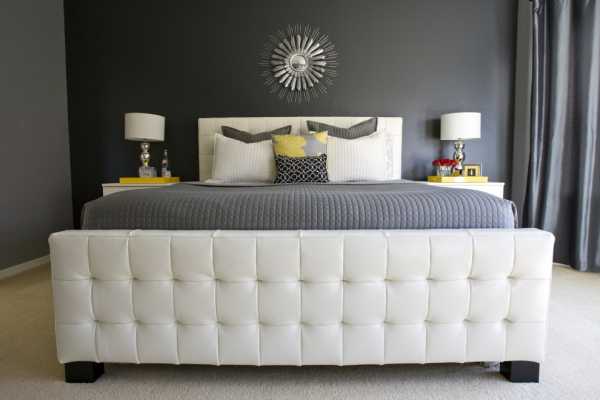 В любом случае, для серого в спальне требуется цвет-»компаньон». Великолепно смотрится спальня в серо-белых или серо-желтых тонах.
