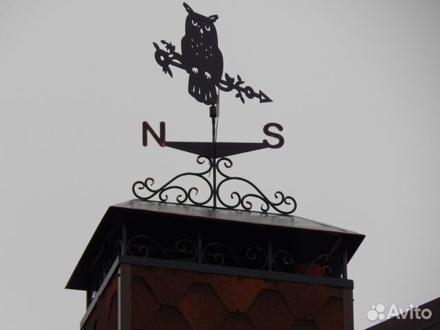 Флюгер является старинным элементом декорирования, а также прикрывает трубу дымохода, защищая ее от проникновения осадков: дождя и снега. Закрепленный флюгер на дымник придаст крыше эстетичность и завершенность внешнего вида.