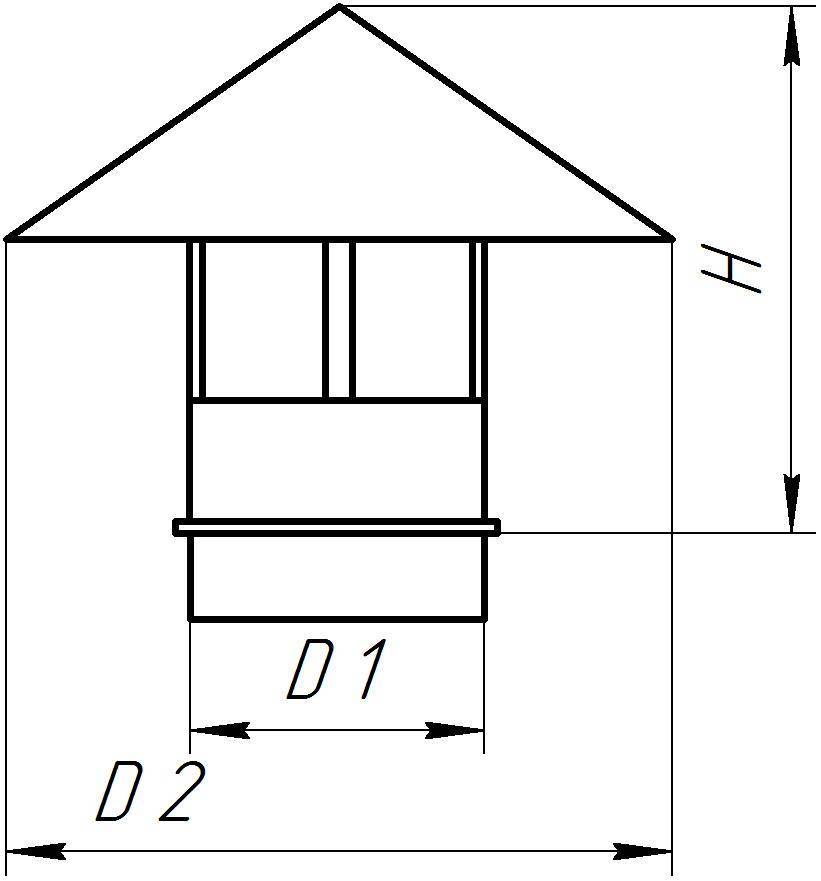 Принцип его работы заключается в том, что поток воздуха, независимо от силы ветра и направления, ударяется о конусообразный верхний колпак и не могут попасть в дымоход. Более того, при правильной конструкции устройства можно добиться завихряющихся потоков, которые будут способствовать улучшению тяги. Даже если ветер начинает дуть снизу, то при такой конструкции дефлектора, как изображена на рисунке, тяга все равно не пропадет, а будет только увеличиваться.