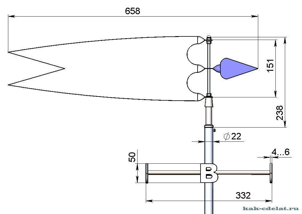 Для этого следует обратить внимание на чертеж, который в точности иллюстрирует, как проще создать декоративный флюгер.