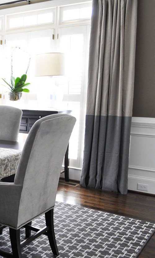 Также хорошо к серым обоям подойдет белый цвет и цвет слоновой кости. Хорошо будут смотреться и серые шторы контрастных тонов, более темных или более светлы, чем сами стены. Подбирая шторы к серым обоям, обратите внимание на оттенок. К теплому серому подойдут теплые оттенки ткани, а к холодному — холодные. Интересным вариантом станут шторы двух тонов (фото ниже).