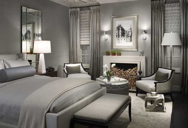 Серые обои в спальне