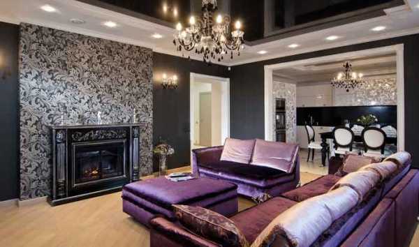 Серые обои в интерьере гостиной