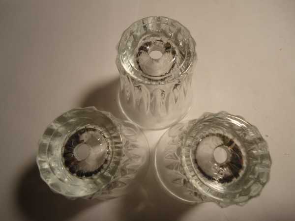 В качестве плафонов использовались недорогие рифлёные рюмки, купленные в Глобусе: