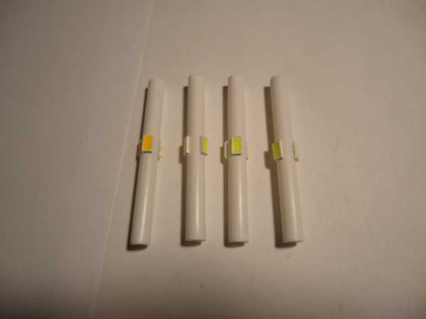 Из ПВХ трубки диаметром 4 – 5 миллиметров, отрезанной в длину по размеру плафона, делаем основание для светодиодов 5730. В качестве материала отлично подойдут трубки от воздушных шариков, которые раздают на всяких мероприятиях.