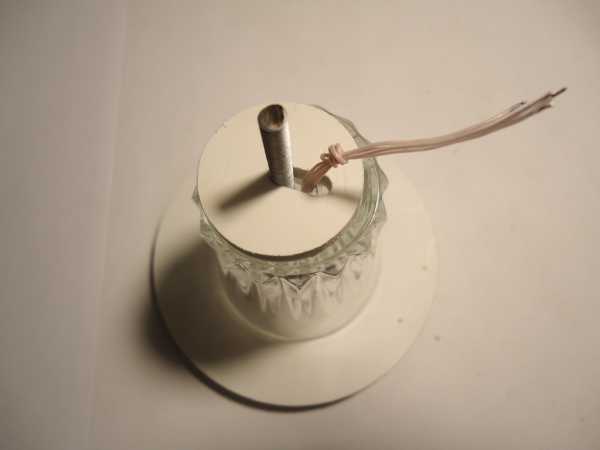 Удобнее всего сверлить на сверлильном станке, выставив обороты в пределах 800 – 1000 и опустив рюмку в неглубокую ёмкость с водой для лучшего охлаждения. Но на крайний случай сгодится обычный шуруповёрт, собственно им я практически все свои плафоны для фонариков и сверлил. При сверлении обязательно придерживайте стеклянную деталь рукой одетой в матерчатую защитную перчатку, чтобы не порезаться, если от излишнего усилия, или внутреннего напряжения стекло лопнет. Но в тоже время будьте внимательны, чтобы перчатку не намотало на сверло.