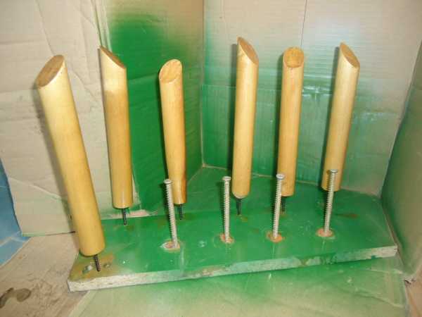 При помощи электролобзика колышки нарезаются длиной примерно 20 сантиметров и покрываются двумя слоями яхтного лака.