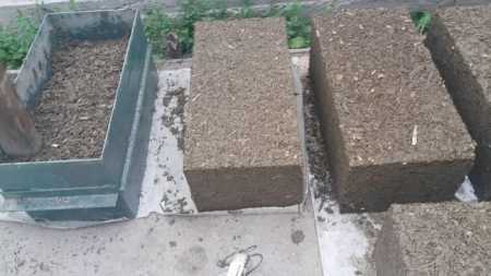 Совет: из-за плохой адгезии цемента с щепой, утрамбовка должна продолжаться не более 20 мин, иначе бетон начнет отделяться от щепы и утрамбовываться на дне.