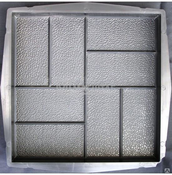 - «Восемь кирпичей» позволяет изготовлять плитки размерами 500х500х50 мм. Это эстетичный тисненый рисунок, где кирпичи расположены в разных направлениях по 2 штуки. Возможен выбор гладкой либо рифленой поверхности.