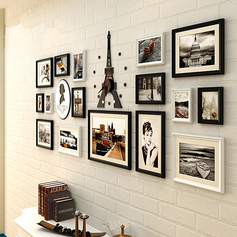 Если у вас скопилось много фото, отличающихся по стилю и размеру, они гармонично впишутся в большую раму.