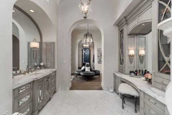 Арка так же может разделить одну комнату на две разные зоны. Например, спальне зону сна от гардеробной или зоны отдыха. Арка над барной стойкой визуально отделит кухонную зону от гостиной. Даже небольшой отступ над потолком будет зрительно разделять помещение.