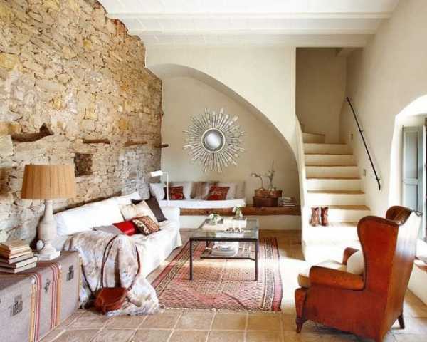 Кантри – прованс, шале, средиземноморский интерьер – будут смотреться убедительно, если использовать в отделке натуральный камень и дерево – это тот случай, когда природный материал важнее изысканности форм.