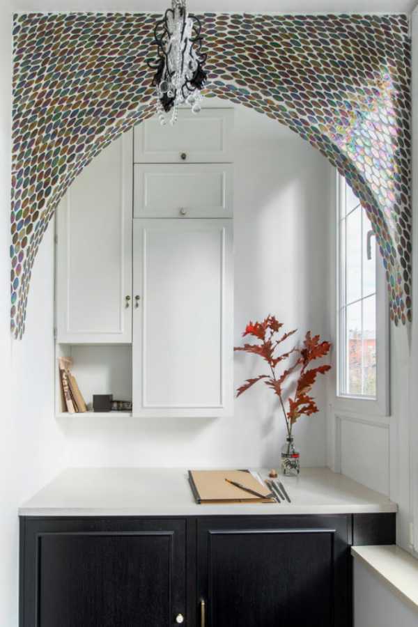 Арка может элегантно и не вычурно вписываться в интерьер, имея общую отделку с поверхностью стен. Так же можно интересно обыграть стену с проемом обклеив ее фотообоями.Мозаика