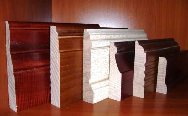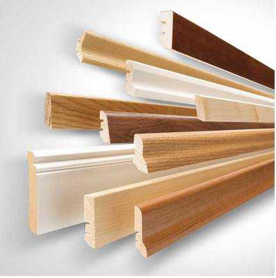| Дерево | Из натуральной и шпонированной древесины также может быть изготовлен светлый декоративный плинтус — белый ясень, сосна и другие породы дерева обладают подходящим оттенком, кроме того, поверхность материала может обрабатываться различными тонирующими пропитками для дерева. |