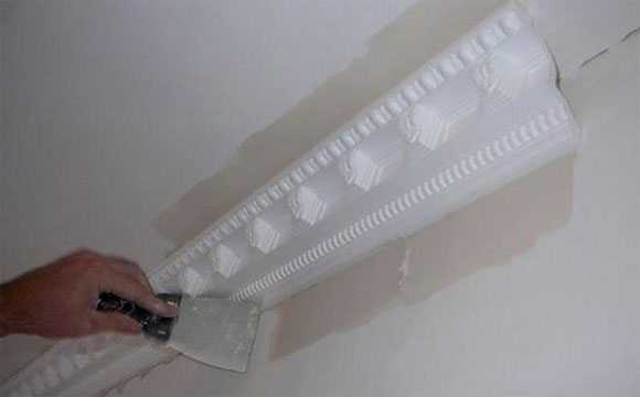 - При монтаже следим, чтобы клей не попадал на лицевую поверхность. Если с ПВХ его еще можно отчистить без следа, то на пенопласте или полистироле пятна останутся практически гарантированно.