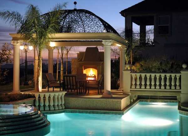 Вдвойне приятным времяпровождением можно считать нахождение зоны отдыха возле огня и воды одновременно. Способы воспроизведения такого проекта летних беседок для барбекю на фото: