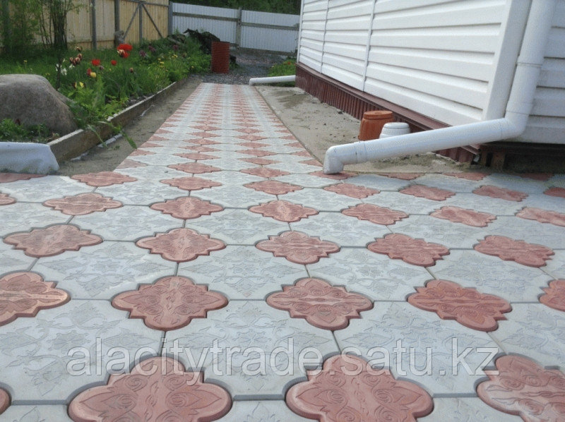 Бетонные блоки брусчатки, уложенные возле дома.0003