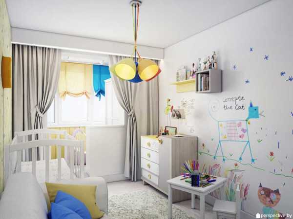Дизайн детской комнаты для девочки от 1 до 3 лет, совмещенная с балконом