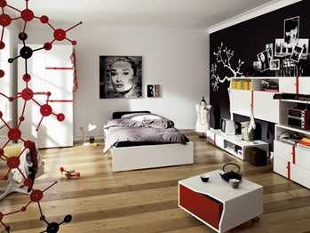 Но и это еще не все требования к мебели. Важным моментом будет тот факт, чтобы пространство комнаты не было загромождено. Поэтому выбирается мебель, обладающая несколькими практичными функциями: модульность, мобильность и многофункциональность. К примеру, все тот же раздвижной диван. Его механизм должен быть прочным, выдерживающим большое количество сборок и разборок. Постарайтесь найти такую модель, чтобы в ее комплекте присутствовали скрытые ниши, куда можно будет сложить часть вещей. Вес так же сыграет большую роль, потому что частые перестановки и изменения внешнего вида комнаты в крови девочки подростка.