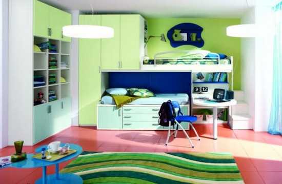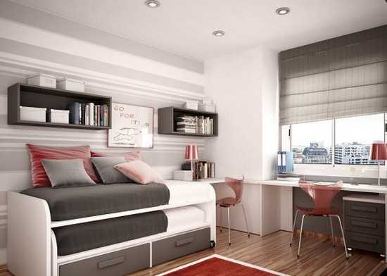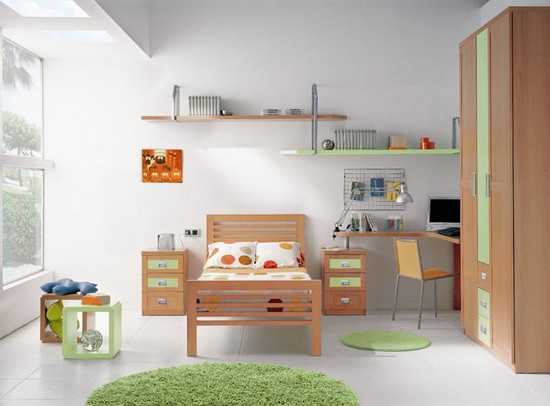 Кроме того, дополнить рабочее место необходимо спальным местом, для этого подойдут как кровати, так и диван. Для маленькой комнаты вполне можно выбрать раскладное спальное место, например, кресло или кушетку. Для двоих детей подойдет двухъярусная кровать.