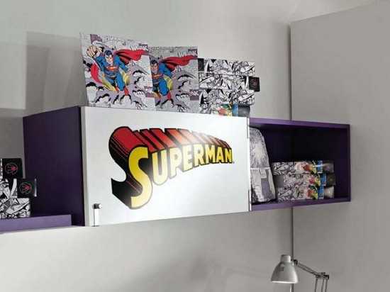 Комната школьника – воплощение самостоятельности. Когда малыш вырастает и становится школьником, ему кажется, что он взрослый. Теперь, как правило, ему не нужны изображения мультипликационных героев на мебели и радуга на стене. Школьнику очень важно иметь разделения мест для учебы и отдыха. В такой комнате очень кстати будет произвести грамотное зонирование, в самый светлый угол разместить письменный стол и книжный шкаф, немного дальше от окна поставить диван, где ребенок днем сможет встречаться и общаться с друзьями, играть в игры, а ночью спать. Но каким бы не считал себя взрослым ребенок, он также нуждается в любимых игрушках, у него всегда есть какое-то хобби – спорт или машины, рисование или вышивание крестиком. Именно эти увлечения должны обязательно учитываться при создании дизайна интерьера. Например, как мы сделали это в данном проекте, применяя в комнате элементы, отражающие увлечение ребенка комиксами Marvel.