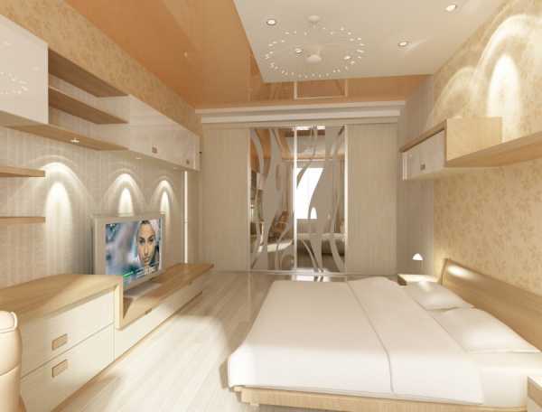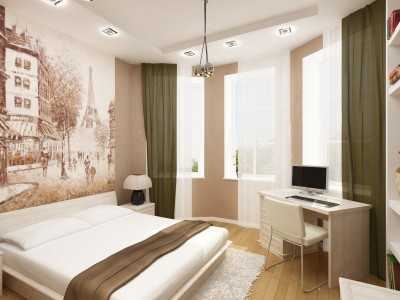 9. Подвесные потолки из ткани в дизайне спальни в квартире