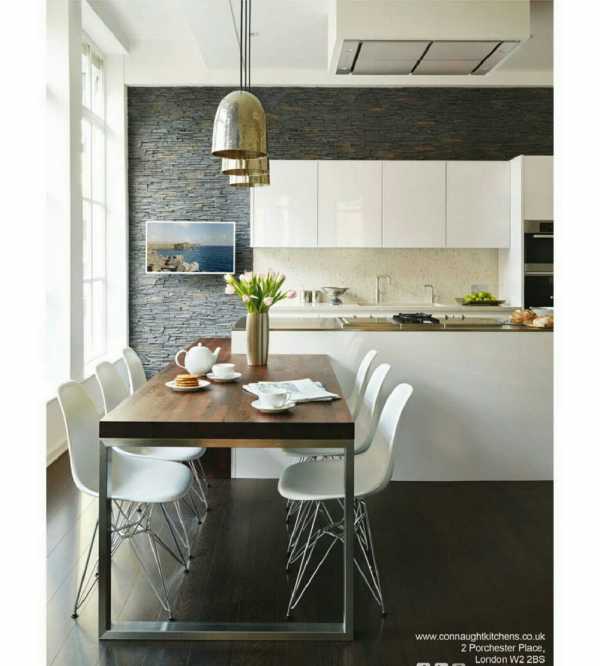 Назначение помещения имеет немалое значение при использовании в интерьере глянцевых поверхностей. Чтобы упростить в дальнейшем уход за ними, выбирайте места и предметы мебели, которые вы не так уж часто будете трогать руками – согласитесь, следы от пальцев не придадут интерьеру изысканности. Так в кухне такую поверхность можно использовать при оформлении кухонного фартука, это может быть блестящий абажур над обеденным столом, стальная сверкающая вытяжка и т.д. А поверхности навесных шкафчиков и рабочая столешница иметь матовую фактуру для поддержания гармонии и общего баланса.
