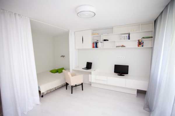 Но подобный эффект можно ожидать в помещениях с хорошим естественным освещением. Именно обилие солнечного света подчеркивает воздушность и объём. А вот в совсем небольшой комнате с одним тусклым окошком вам скорей станет «холодно» от по больничному бездушно-белых стен. Даже если вашим выбором станут бежевые тона, для небольшого слабоосвещенного пространства это не станет спасением — интерьер может получиться размытым и невнятным.