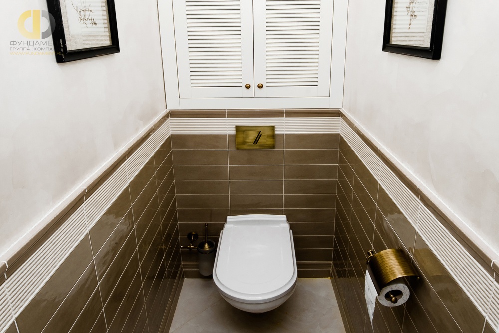 Это идеальный дизайн домашнего туалета, в котором представлены традиционные классические детали, придающие возвышенность каждому элементу помещения.