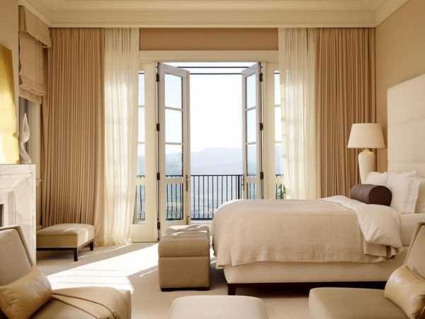 Спальня для человека является местом отдыха. Поэтому её оформление, должно быть, в более тёплых и спокойных тонах. Это касается и дизайна окна. Для спальни нужно выбирать плотные увесистые портьеры, которые не пропускают свет.