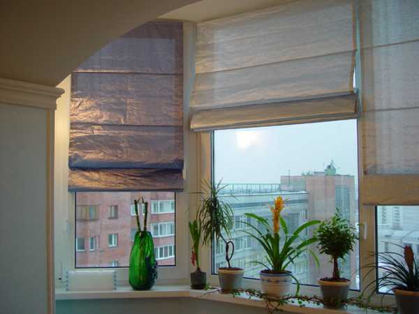 Уже несколько лет модными являются римские шторы — некое сочетание занавесок с жалюзи. Но они подходят больше для окна в спальне или на кухне.
