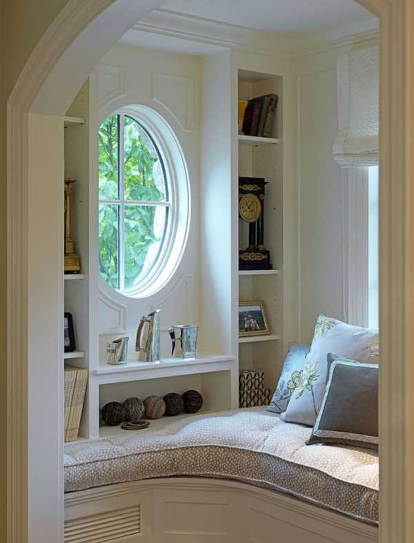 Арочное окно отлично подчеркивает классические линии интерьера и способно в одиночку преобразить внешний вид помещения. Контрастное оформление перекрытий окна в темных тонах на фоне светлой отделки комнаты, мгновенно делает его центром фокусировки внимания, вокруг которого строится вся концепция дизайна пространства.