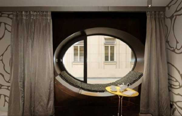 Оригинальным элементом интерьера комнаты могут стать круглые окна – иллюминаторы. Для этого необязательно оформлять помещение в морском стиле, традиционная обстановка или современный стиль гармонично будут смотреться с круглыми оконными проемами.