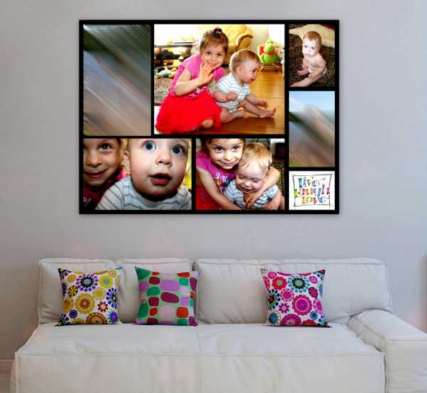 Подобрав несколько любимых фото, распечатайте их в виде коллажа. Для этого просто нужно обратиться в любой фото- или копицентр. В зависимости от предпочтений и дизайна интерьера, можно выбрать любой цвет для фона и тип размещения фото.